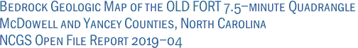 This multi-colored map of the Old Fort 7.5-minute quadrangle includes a description of map units, whole rock ICP analysis of selected samples, Schmidt equal area stereonet data, a traverse map and one cross section. Contains portions of Yancey and McDowell counties.